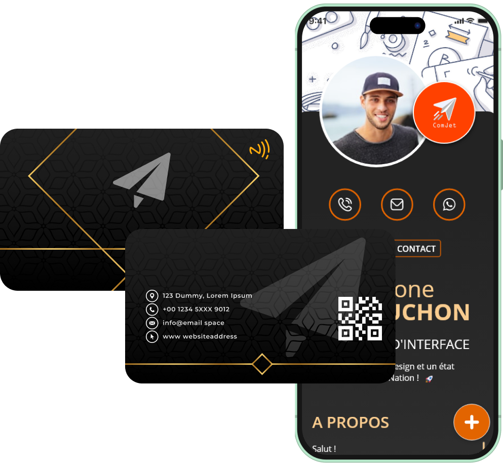 Partagez instantanément vos coordonnées et informations essentielles via QR code ou carte NFC, de manière universelle.